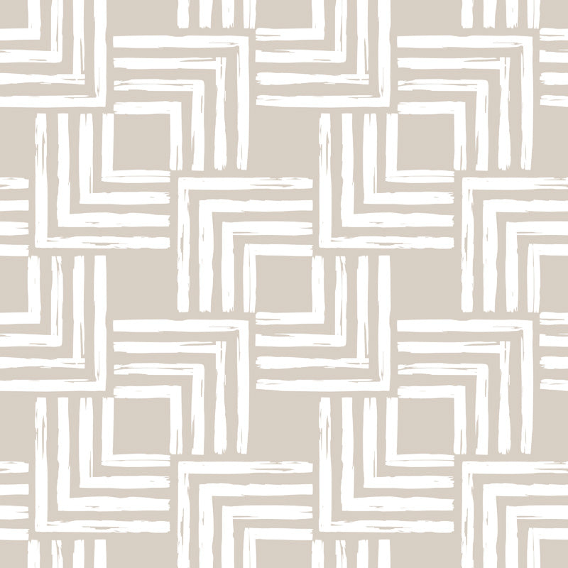 The pattern showcases bold L-shaped strokes that form a subtle grid, creating an interplay of angles and open space. Available in two colourways, the black-on-white version offers a striking, contemporary look ideal for bold feature walls, while the cream variation delivers a gentler, more neutral feel suited to calm, refined interiors.