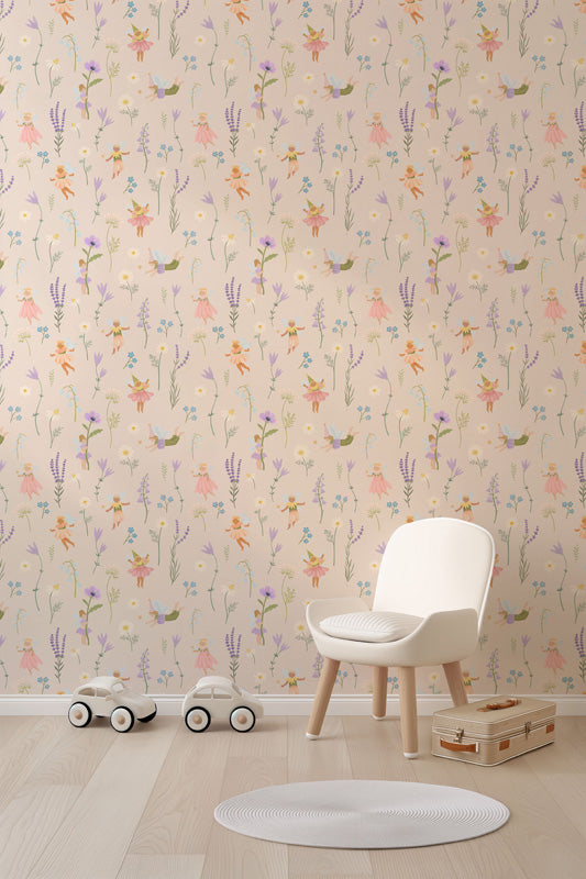 Fairy Meadow Garden – Kids Wallpaper in Soft Pastels