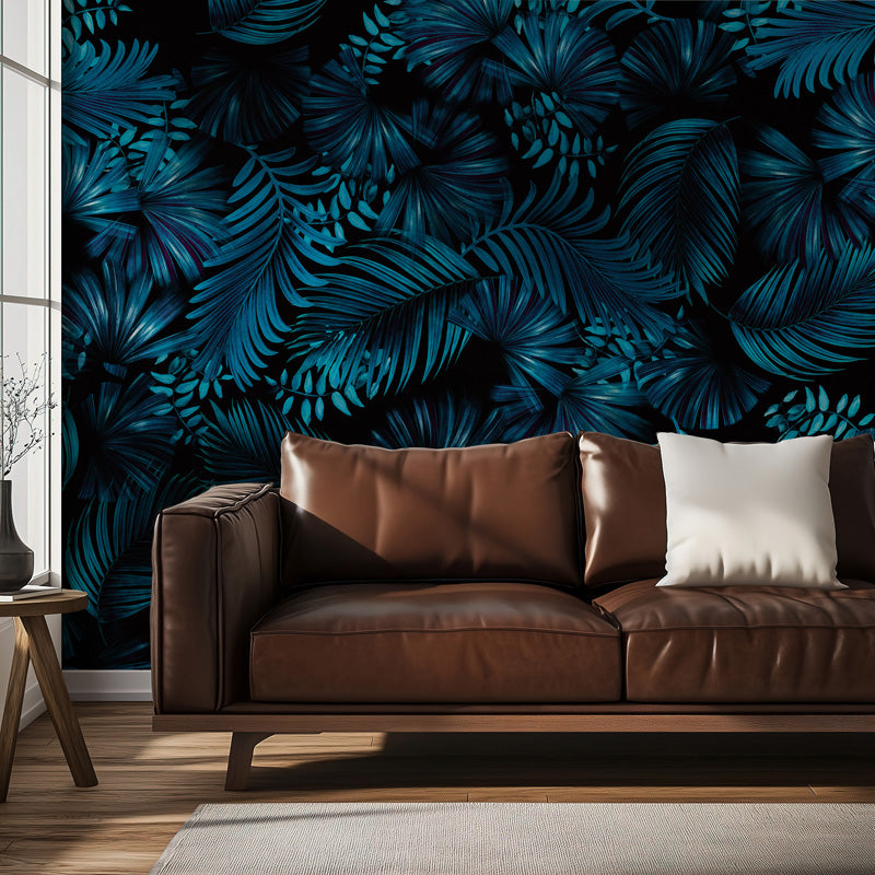 The mood is bold and sophisticated, making this wallpaper ideal for feature walls in living rooms, bedrooms and dining spaces, as well as statement-driven commercial interiors such as bars, restaurants and boutique venues. Its dark tropical character creates impact while maintaining a refined, design-led finish.