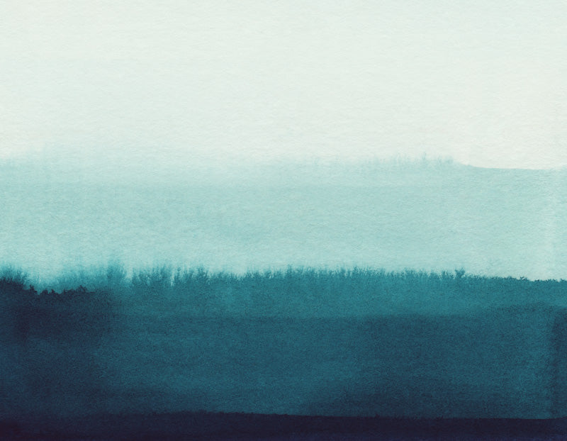 This mural features layered washes of blue tones that fade gently into one another, creating the impression of distant horizons and open skies. The soft gradients and watercolour texture give the design a fluid, atmospheric quality that feels expansive and soothing.
