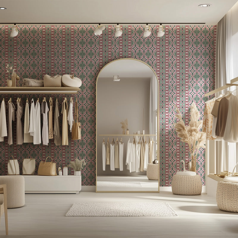 Available in multiple colour palettes, the same detailed pattern takes on different personalities depending on the tones selected. Lighter palettes offer a softer, vintage-inspired feel, while warmer or richer variations create a bolder, more expressive interior statement, making the design versatile across a range of settings.