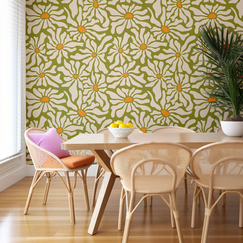 Retro Daisy Wave Floral Wallpaper – Bold Botanical Design