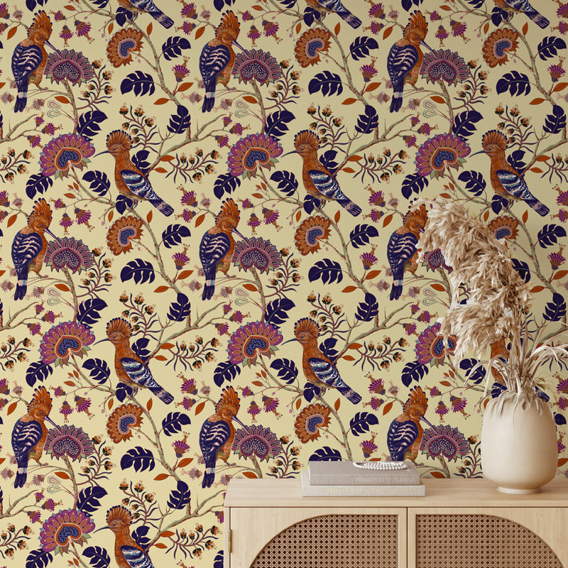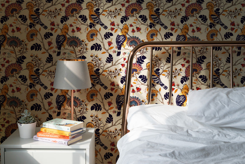 Spicebird Grove brings a sense of curated charm to your walls, blending decorative birds with stylised botanicals for a look that feels both artistic and inviting. It’s the kind of pattern that reads as playful up close, yet settles into a confident, layered backdrop from across the room.