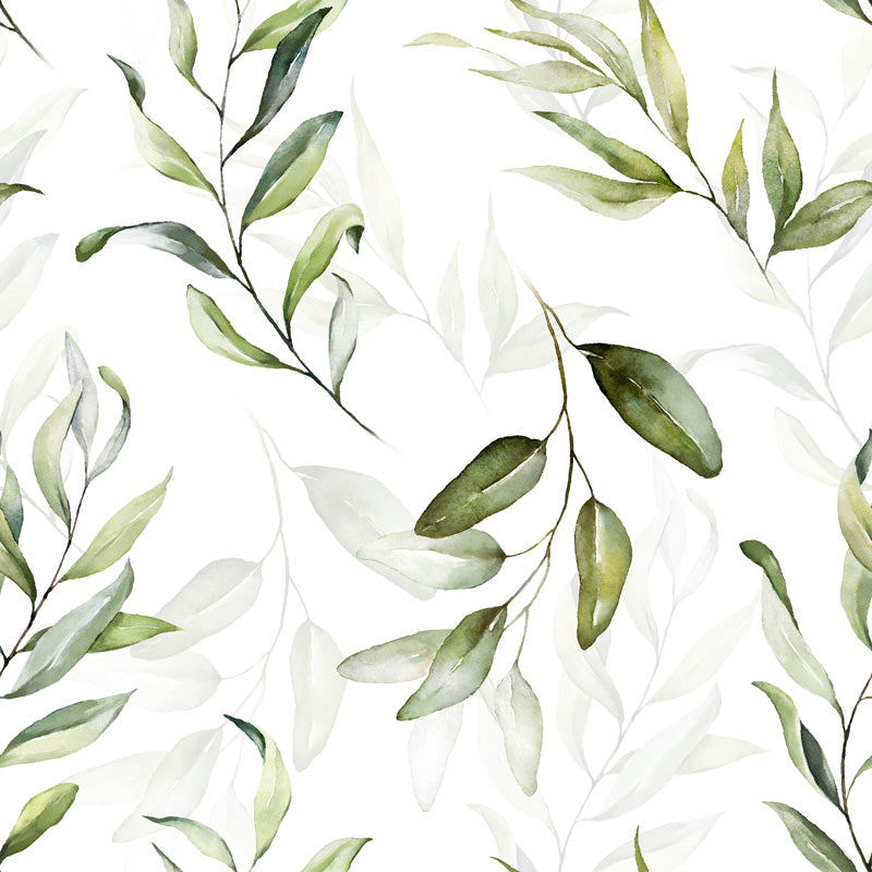 This watercolour leaf branch wallpaper features slender botanical stems and gently layered leaves arranged in an open, repeating composition. The hand-painted style creates subtle depth and softness, allowing the design to feel light, modern and effortlessly natural on the wall.